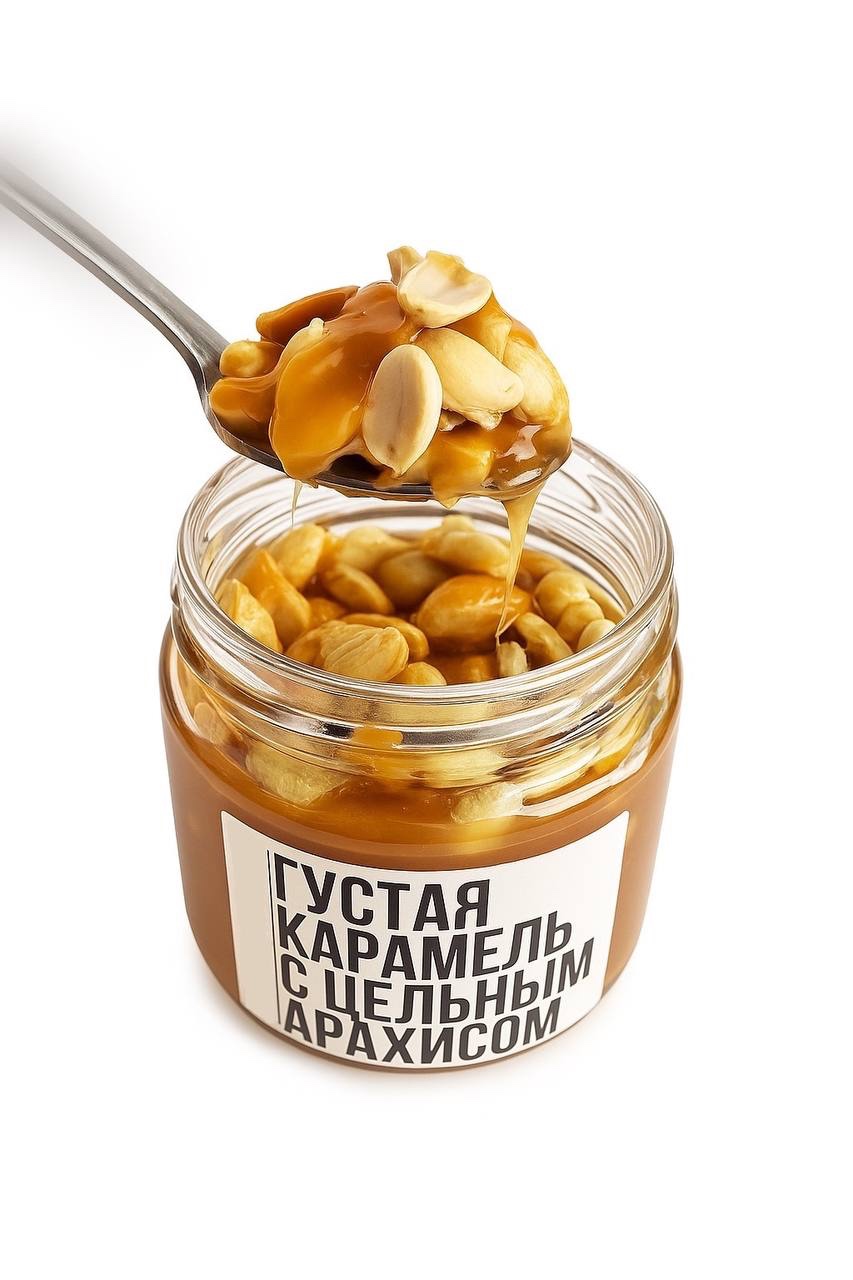 Соленая карамель ГУСТАЯ С ЦЕЛЬНЫМ АРАХИСОМ 200 гр. 33%