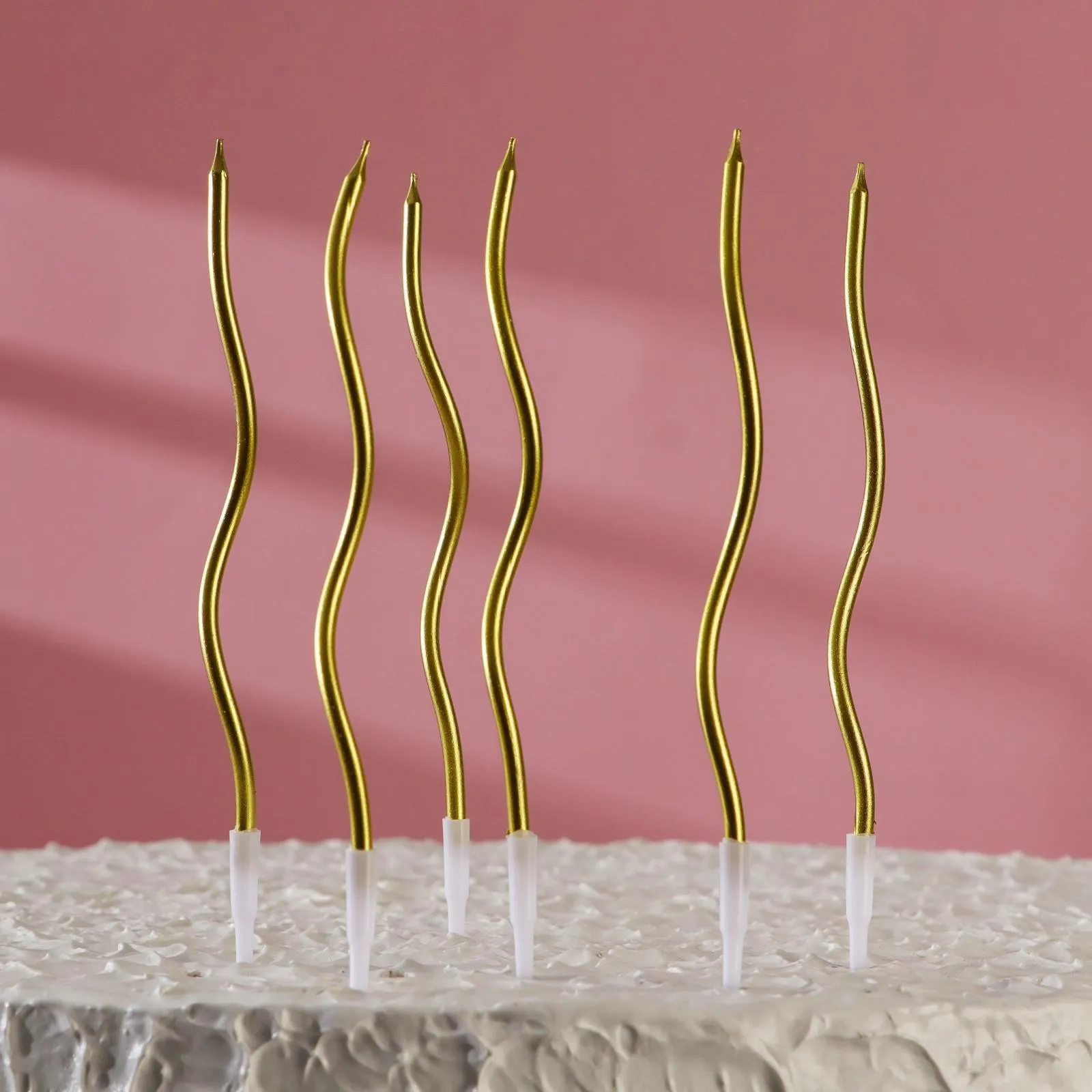 Свечи в торт "Серпантин" 6 шт, 15см, золотой металлик (волна)